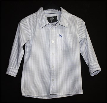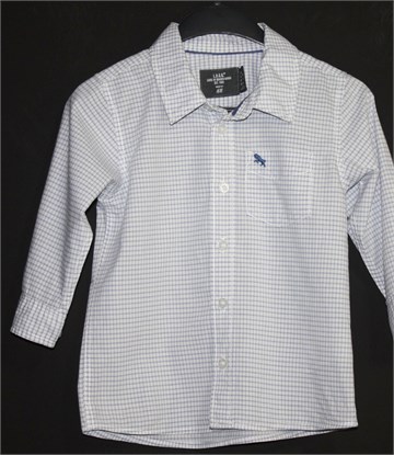 H&M L.O.G.G. košulja sa dugim rukavima, bijele boje sa plavim prugama/kockasti uzorak. Prednje kopčanje, džepić na prsima. Čvrst i kvalitetan pamuk.