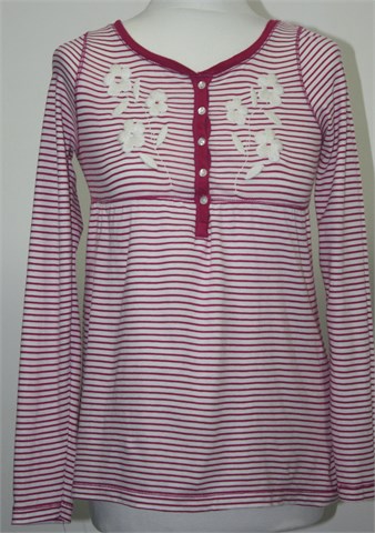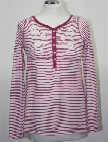 H&M L.O.G.G. majica sa dugim rukavima, bijele boje sa prugama u boji ciklame. Prednje kopčanje, končane aplikacije. Mekan i rastezljiv pamuk.
