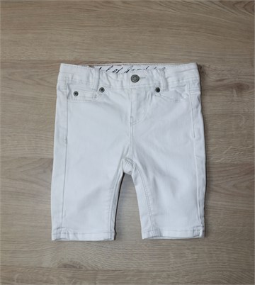 H&M L.O.G.G. hlačice od trapera, bijele boje. Prednji cif i kopčanje, pasica za remen. Prednji i stražnji klasični džepovi, malo rastezljive. Regulacije širine struka unutar pasice (bočne gumice i gumbić).