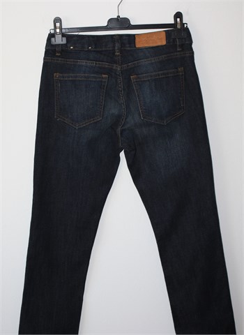 H&M L.O.G.G. traper hlače tamno plave boje, mjestimično ispranog izgleda (blagi used look). Prednji cif i kopčanje, pasica za remen. Prednji i stražnji džepovi, blago rastezljive.