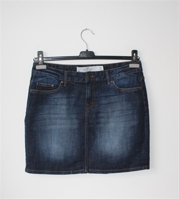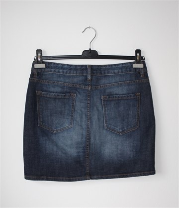 H&M L.O.G.G. traper suknja tamnije plave boje, mjestimično ispranog izgleda (tvornički used look). Prednji cif i kopčanje, pasica za remen. Prednji i stražnji džepovi, blago rastezljiva.