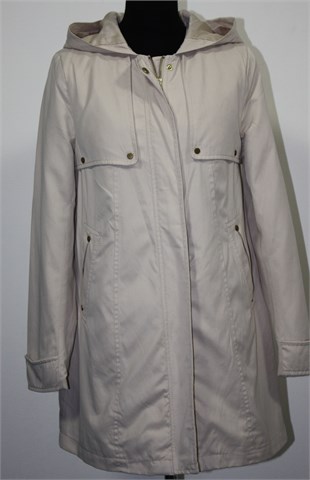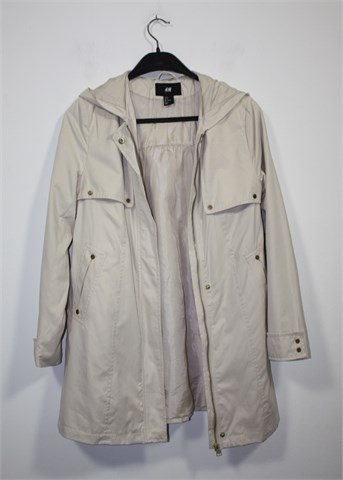 H&M baloner/jakna svijetlo bež boje. Prednji skriveni cif i kopčanje sa drukerima. Bočni kosi džepovi, kapuljača. Podstavljena. Na dnu jaknice dva blijeda flekića ali zaista jedva primjetno. Lagana, odlična za prijelazno vrijeme.