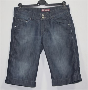 H&M bermude/shorts od trapera, srednje plave boje mjestimično ispranog izgleda. Prednji cif i kopčanje, pasica za remen. Prednji i stražnji džepovi.