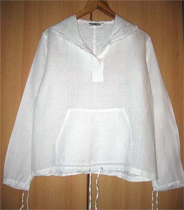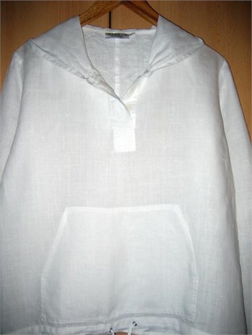 100% ramia (materijal koji djeluje kao lan ali je puno čvršći), džep na prednjoj strani, kapuljača, vezice na rukavima i na donjem dijelu košuljice