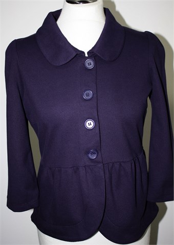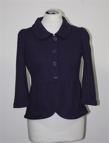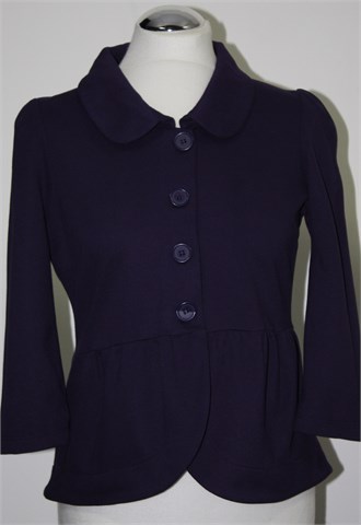 H&M kraća jaknica/blazer sa poludugim rukavima, tamno ljubičaste boje. Prednje kopčanje (jedan gumbić je pukao ali uz jaknicu dolaze rezervni), gumbići na kraju svakog rukava. Vrlo blago rastezljiva.