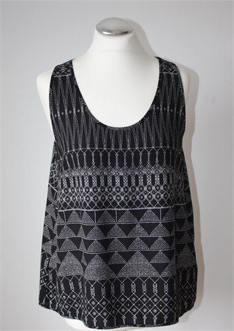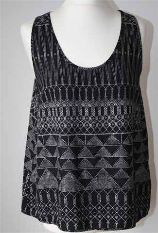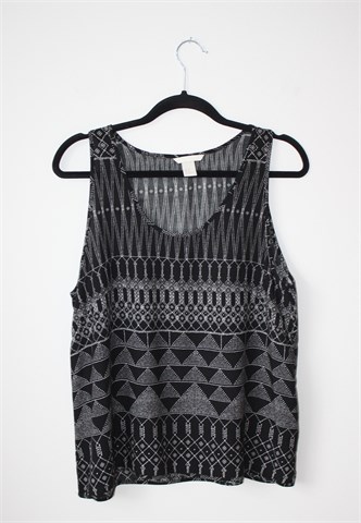 H&M bluza bez rukava, crne boje sa bijelim printom (uzorak printa vidljiv na slikama). Tanja i lagana, nije rastezljiva.