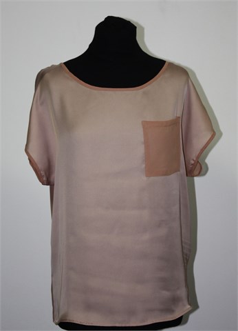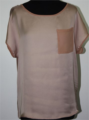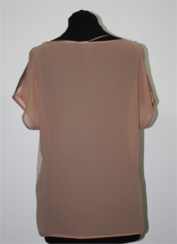 H&M bluza sa kratkim rukavima, nude-bež boje. Sa prednje strane mali džepić, različiti materijali sa prednje i stražnje strane (providna sa stražnje strane.