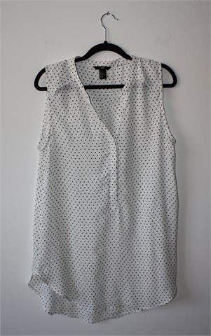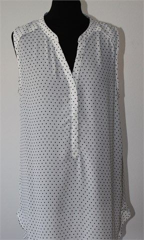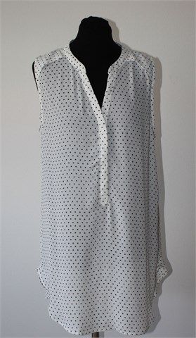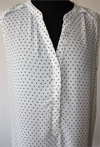 H&M bluza/tunika bez rukava, bijele boje sa crnim printom zvijezdica. Prednje skriveno kopčanje, nešto je duža sa stražnje strane (vidjeti mjere). Tanja i lagana, blago providna. Nije rastezljiva.