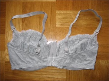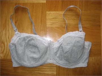 Grudnjak za dojenje svijetlo sive boje sa ukrasnom čipkicom. Mekan i vrlo ugodan, prilagodljive naramenice.