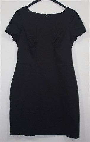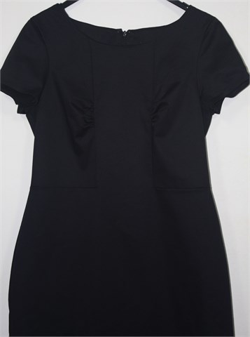 H&M haljina sa kratkim rukavima, crne boje. Prednji ušitci za grudi, rastezljiv materijal (lijepo se prilagođava po tijelu). Mali stražnji rasporak.