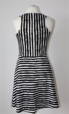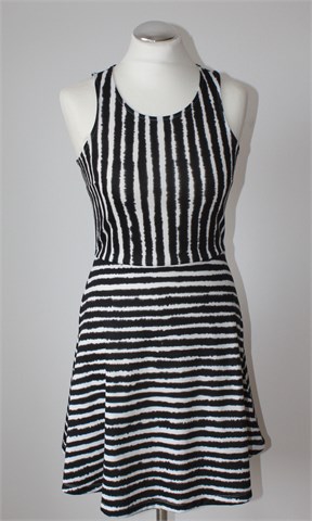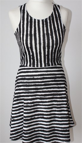 H&M haljina bez rukava, crno-bijele boje sa prugastim uzorkom. Materijal srednje debljine, rastezljiv.
