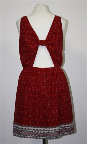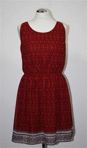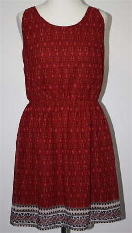 H&M Divided haljina bez rukava, zagasito tamno crvene boje sa printom (boje i uzorci kao na slikama). Gumica u struku, otvor na leđima. Lagana i prozračna.