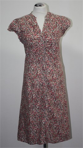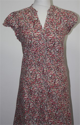 H&M haljina sa kratkim rukavima i cvjetnim uzorkom. Prednje kopčanje cijelom dužinom, ušice za remen u visini struka. Prednji i stražnji ušitci (strukirana). Na krajevima rukavića su gumice.