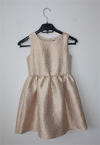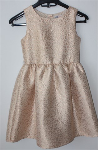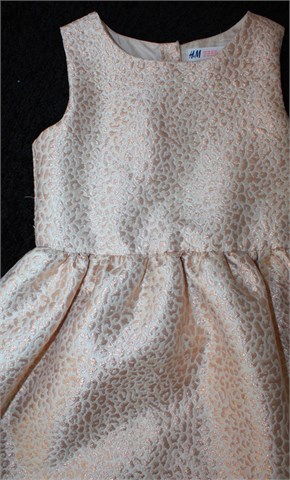 H&M haljina bez rukava, nude-roze boje sa uzorkom od šljokavog konca (vidljivo na slikama). Bočne ušice za remen (jedna se odšila). Podstavljena, kopčanje sa 4 gumbića sa stražnje strane.