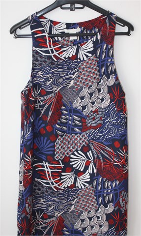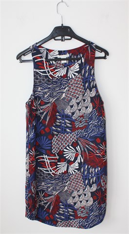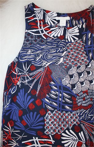 H&M haljina/tunika tamno plave boje sa šarenim printom (boje i uzorak printa vidljivi na slikama). Nije rastezljiva.