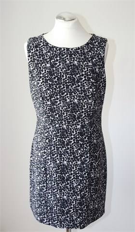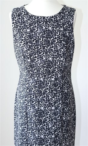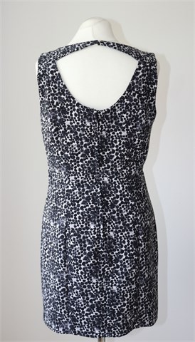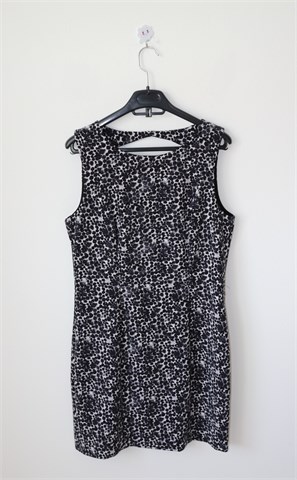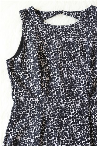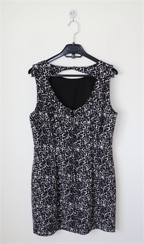 H&M haljina bez rukava, print u kombinaciji crne, bijele i sive boje (uzorak printa vidljiv na slikama). Stražnji cif, gumbić na vratu (otvor na leđima - vidljivo na slikama). Strukirana, blago rastezljiva. Podstavljena.