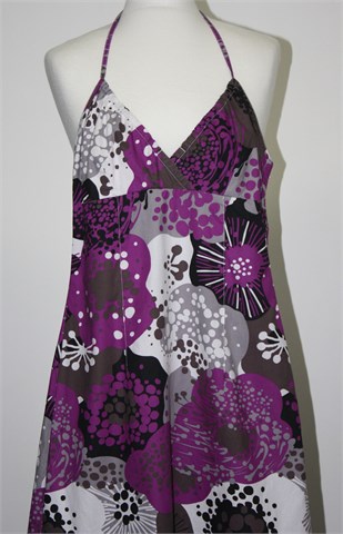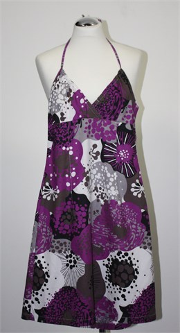 H&M haljina s uzorkom (boje kao na slici). Vezanje oko vrata, leđa su otvorena (na leđima gumice pa je širina prilagodljiva). Bočni cif i gumbić. Lagan i mekan pamuk.