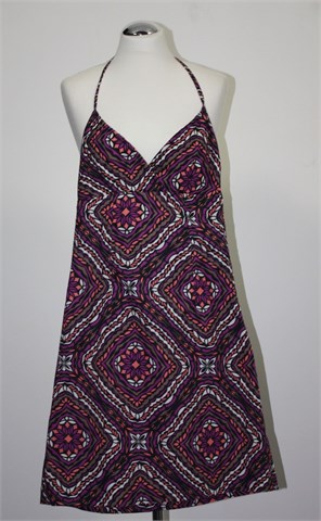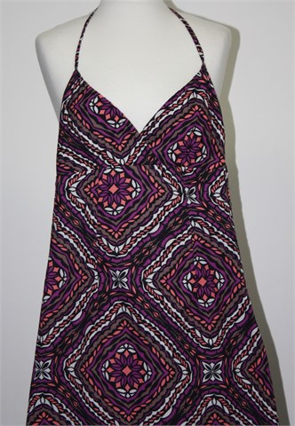 H&M haljina sa šarenim uzorkom (boje i uzorak vidljivi na slikama). Vezanje oko vrata, leđa su otvorena (na leđima gumice pa je širina prilagodljiva). Bočni cif i gumbić. Lagan i mekan pamuk.