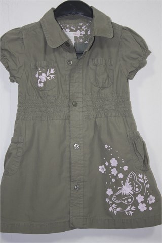 Sastav: 100% pamukH&M haljinica maslinasto zelene boje sa detaljima u rozoj boji. Nošena, očuvana.Veličina piše 80 ili 9-12 mjeseci.
