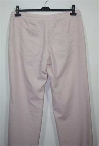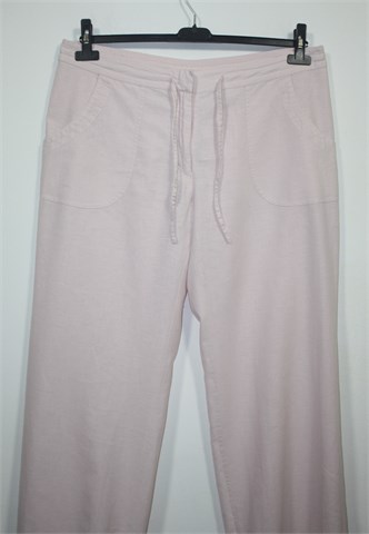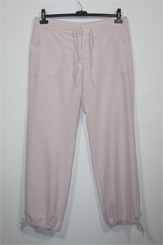 H&M ljetne hlače roze boje, odlična kombinacija lana i pamuka. Prednji cif i kopčanje, vezica u pasici. Prednji dublji džepovi, stražnji klasični. Na dnu nogavica vezanje sa vezicama. Lagan i prozračan materijal.