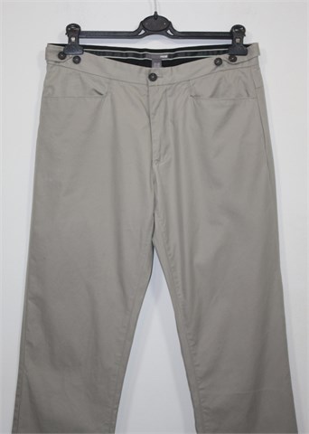 H&M pamučne casual hlače sivo-bež boje. Prednji cif i kopčanje, prednji i stražnji džepovi. Slim leg model, nogavice se pri dnu sužavaju. Nisu rastezljive.
