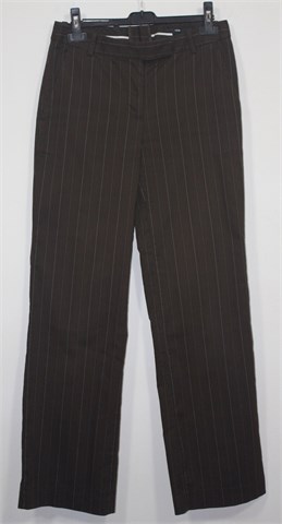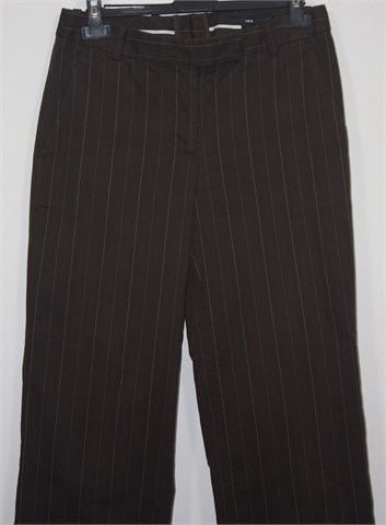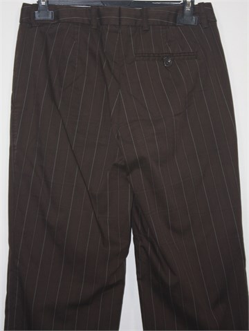 H&M hlače smeđe boje sa svijetlim prugama. Hlače imaju prednji cif i kopčanje, pasicu za remen. Prednji bočni i jedan stražnji skriven džep sa gumbićem. Lagan i rastezljiv materijal.