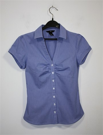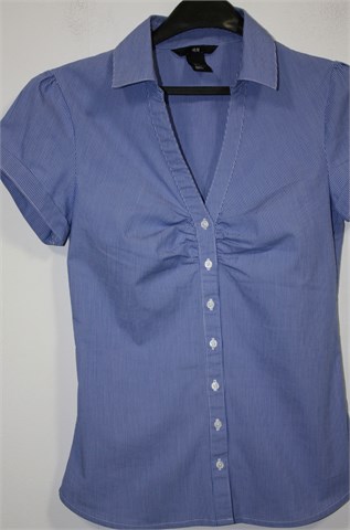 H&M košulja sa kratkim rukavima, plave boje sa bijelim prugama. Prednje kopčanje, blago nabrana na prsima. Strukirana, blago rastezljiva.