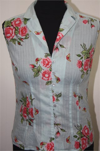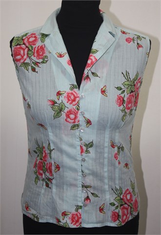 H&M košulja bez rukava, svijetlo plave boje sa cvjetnim printom i šljokavim prugama. Mekan i vrlo lagan pamuk.