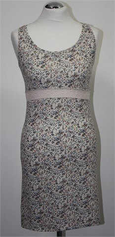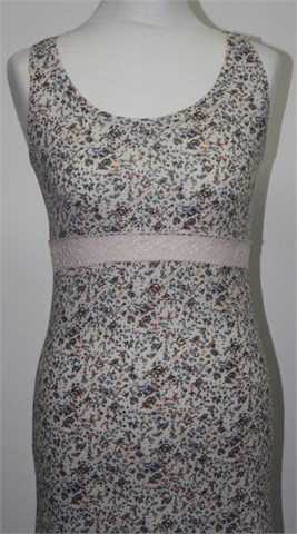 H&M kraća haljina ili tunika bez rukava, svijetlo bež /nude boje sa sitnim cvjetnim printom. Ispod prsiju je ušivena heklana traka (sa obje strane). Mekana i rastezljiva.