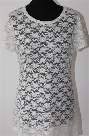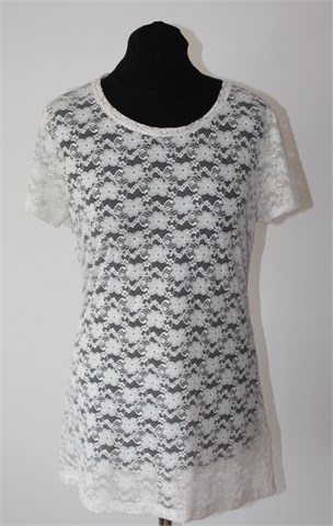 H&M Conscious Collection majica sa kratkim rukavima, prljavo bijele boje. Uzorak čipke na materijalu (vidljivo na slikama), tanja i providna, rastezljiva.
