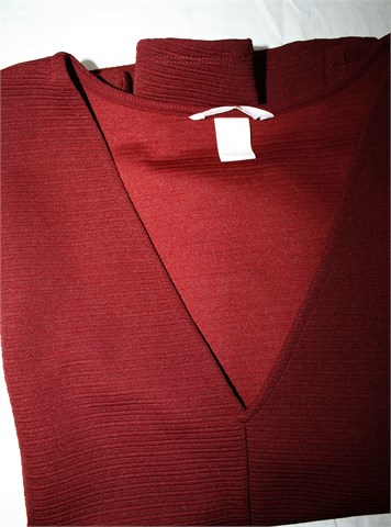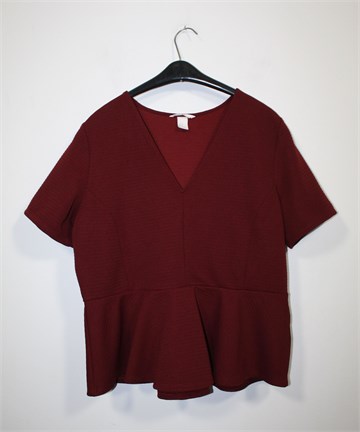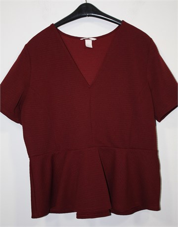 H&M peplum majica sa kratkim rukavima, neobična nijansa tamno bordo-narančasto-smeđe boje. Rebrast materijal, deblji i blago rastezljiv.