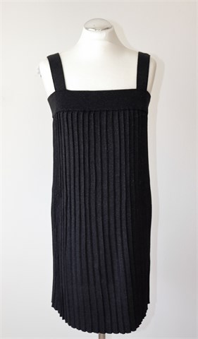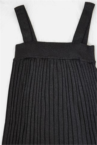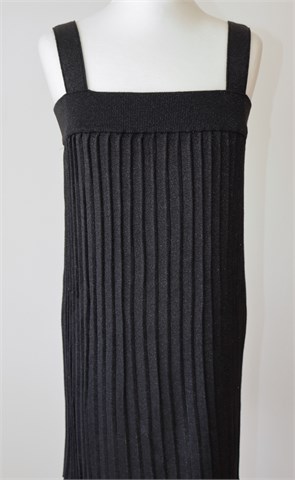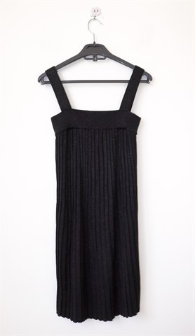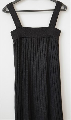 H&M plisirana pletena tunika/kratka haljina sa tankim naramenicama, crne boje sa diskretnim sjajnim nitima. Rastezljivo pletivo.