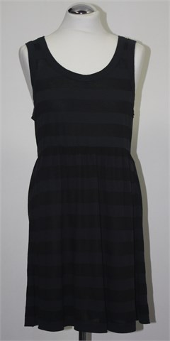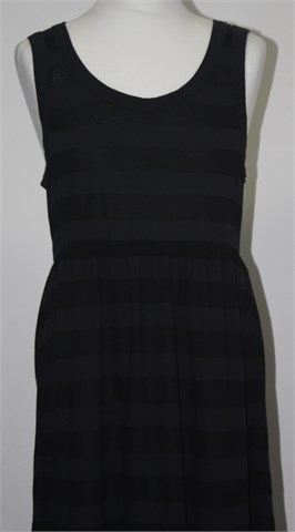 H&M tunika (ili kratka haljina) u prugastoj kombinaciji crne i tamno sive boje. Bez rukava, "rezana" ispod grudi gumicom, prema dolje se širi pa nije uz tijelo. Lagana, mekana i prozračna. Blago rastezljiv materijal.