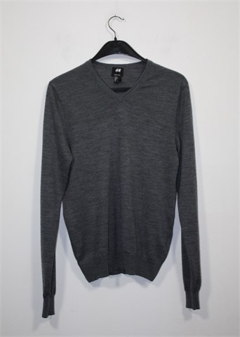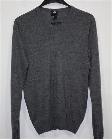 H&M pulover prošarano tamnije sive boje. Prednji V otvor, mekano i rastezljivo pletivo (tanje). Unisex model.