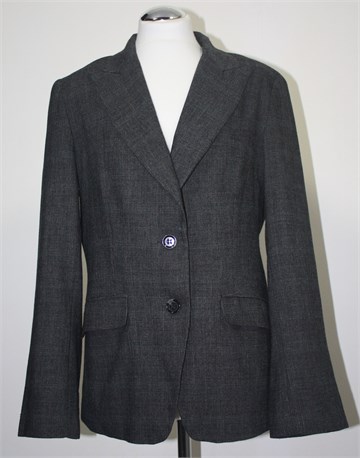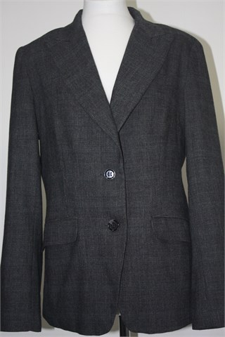 H&M sako/blazer od mekanog štofa, prošarano sive boje. Prednje kopčanje, bočni džepovi sa preklopom (šivani, bili su rasporeni). Blagi jastučići u ramenima, podstavljen.