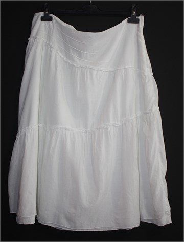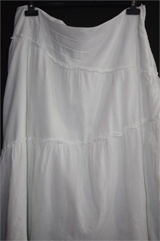 H&M suknja bijele boje sa volančićima i ukrasnim prošivima. Bočni cif i gumbić, podstavljena pamučnom podstavom. Lagana i prozračna.