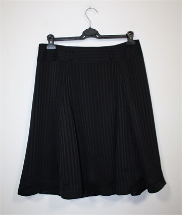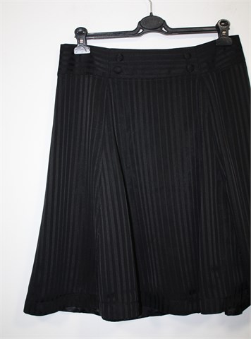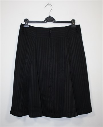 H&M prekrasna suknja crne boje. Vanjski sloj je providan i prugast, unutarnji sloj (ili podstava) je crne boje. Stražnji cif i gumbić. Lagana i prozračna, nosiva cijelu godinu.