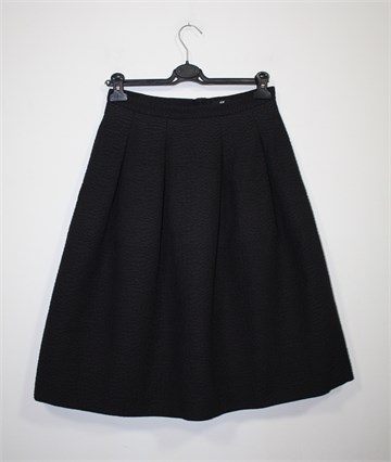 H&M suknja midi dužine, crne boje s uzorkom na materijalu. Stražnji cif i kopčanje, deblji i bogat materijal (odlično drži formu).
