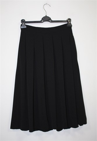 H&M duža suknja, crne boje sa uzorkom na materijalu. Stražnji cif i gumbić, bočni džepovi.