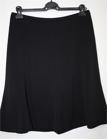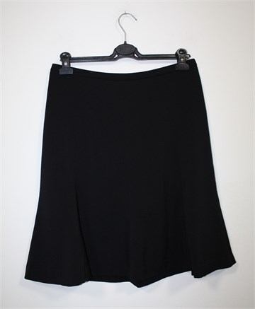 H&M suknja crne boje, lijepog klasičnog kroja. Stražnji cif i gumbić, podstavljena. Tanji štofasti materijal.
