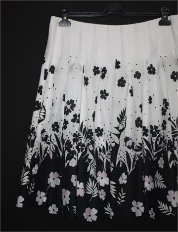 H&M suknja crno-bijele boje sa cvjetnim printom. Bočni cif i kopčanje, podstavljena. Vrlo lagana i prozračna.