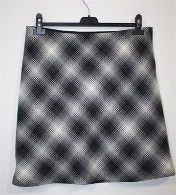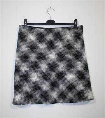 H&M suknja od štofa, kombinacija crne, bijele i sive boje sa prugasto-kariranim uzorkom (kao na slikama). Bočni cif i gumbić, podstavljena. Blago rastezljiva.