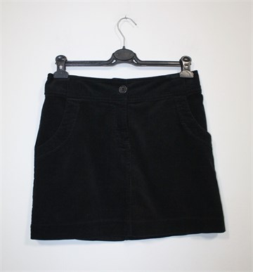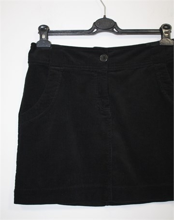 H&M kraća suknja od samta, crne boje. Prednji cif i kopčanje, prednji bočni džepovi. Mekani samt.