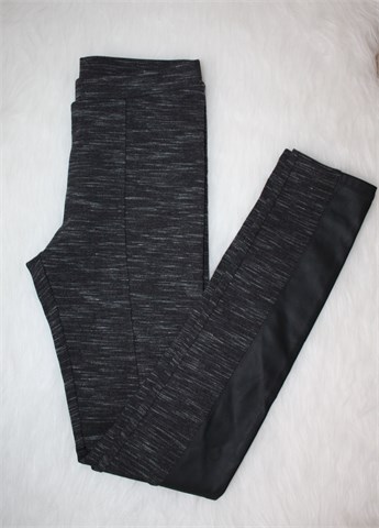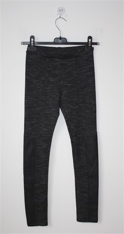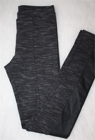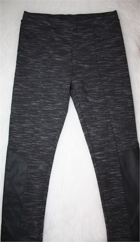 H&M tajice prošarano sive boje, sa prednje strane detalji od umjetne kože (skaj) crne boje. Gumica u struku (prilagodljiva širina - vidjeti mjere), rastezljive.