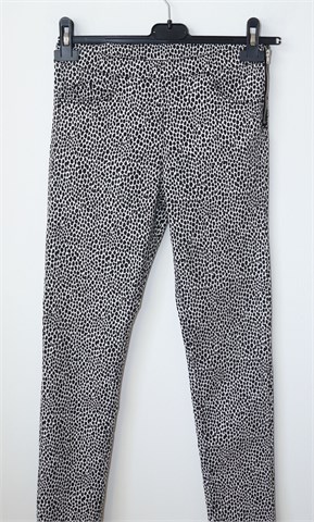 H&M tajice-traperice bijele boje sa crnim printom (uzorak printa vidljiv na slikama). Prednji džepovi, bočni cif. Rastezljive.