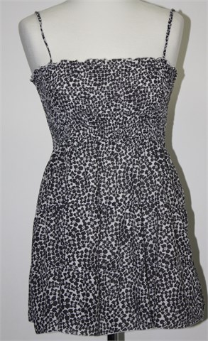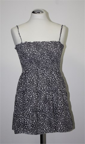 H&M topić bijele boje sa crnim cvjetnim printom. Tanke, podesive naramenice, stegnut gumicama u gornjem dijelu (vrlo rastezljivo). Lagan, tanak i prozračan pamuk.