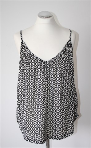 H&M topić/bluza sa tankim, fiksnim naramenicama, crno-bijele boje sa printom/uzorkom (vidljivo na slikama. Tanji i lagan, rastezljiv.
