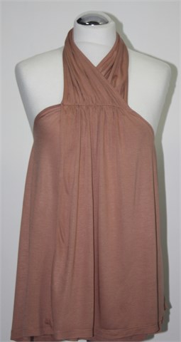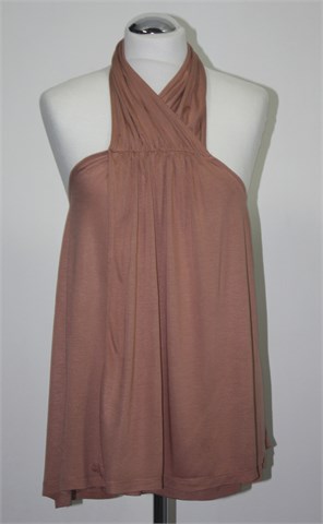 H&M topić svijetlo smeđe/tamnije bež boje. Sa prednje strane fiksan preklop i trakica koja ide oko vrata. Mekana i rastezljiva viskoza.