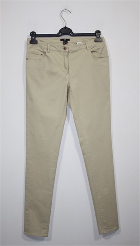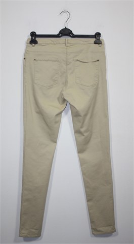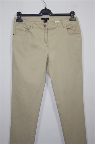 H&M traper hlače bež boje. Prednji cif i kopčanje, pasica za remen. Prednji i stražnji klasični džepovi. Uske nogavice, rastezljivi traper.