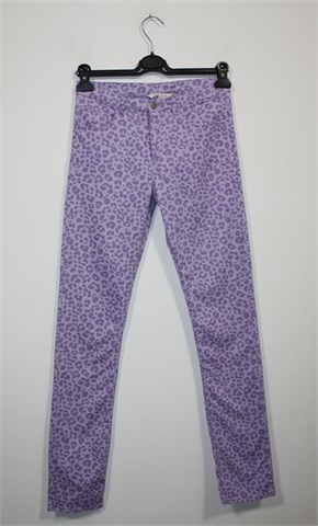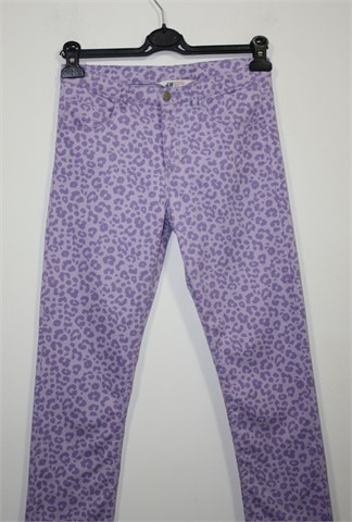 H&M traper hlače, lila boje sa ljubičastim printom (uzorak vidljiv na slikama). Prednji cif i kopčanje, pasica za remen. Prednji i stražnji džepovi. Skinny model, rastezljive.